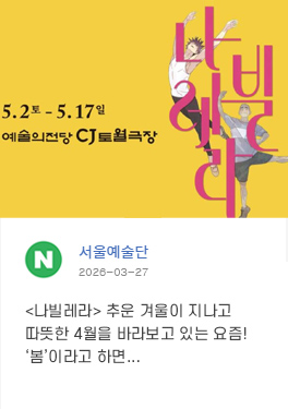 공지사항2026.02.09[2026 서울예술단 작품 지역공연 공모]2026 서울예술단 작품 지역공연 공모 2026년도 서울예술...