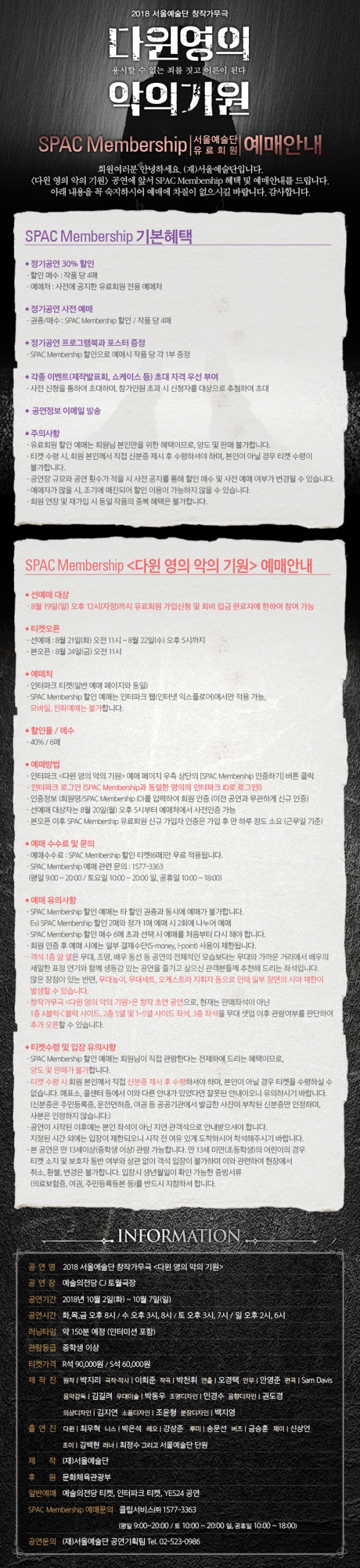 [다윈 영의 악의 기원] SPAC Membership 서울예술단 유료회원 예매안내